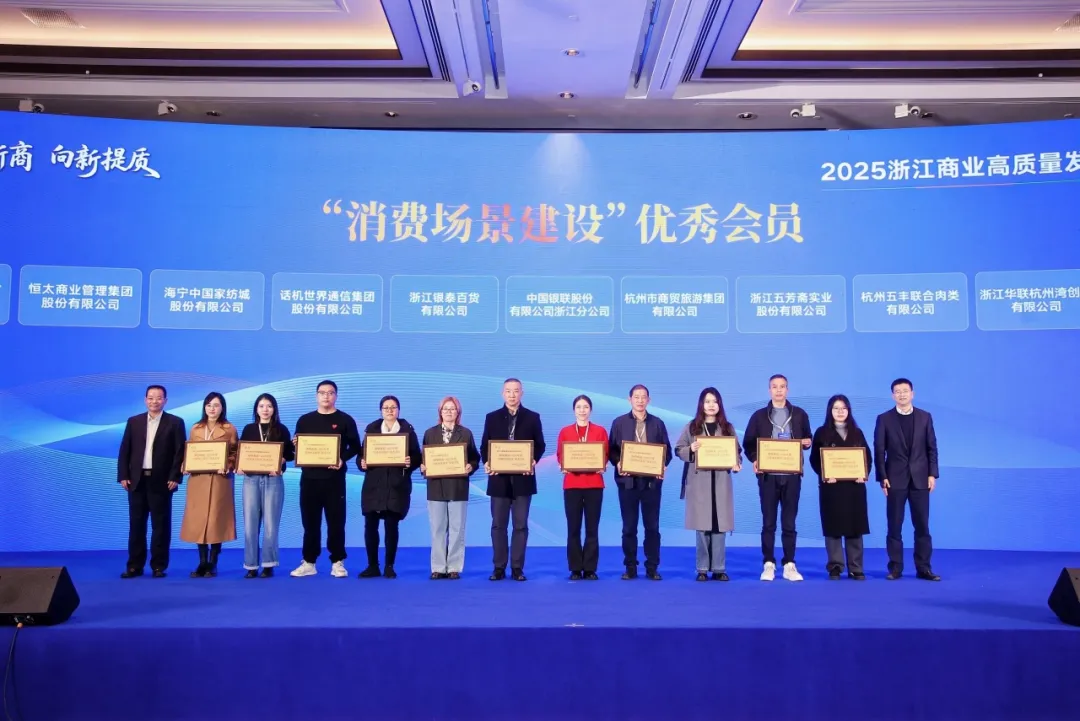 12月30日,由浙江省委社会工作部、浙江省商务厅、浙江工商大学、浙江交通集团指导,浙江省商贸业联合会、浙江省商业总会、浙江工商大学现代商贸研究中心联合主办的“潮擎浙商 向新提质”2025浙江商业高质量发展创新大会在杭州黄龙饭店隆重举行,会上集中表彰了浙江省商业总会、浙江省商贸业联合会“潮擎浙商·2025年度优秀会员”,海宁中国家纺城股份有限公司凭借在沉浸式体验、即时零售等消费场景建设上的创新实践,荣获“潮擎浙商·2025年度‘消费场景建设’优秀会员”称号。