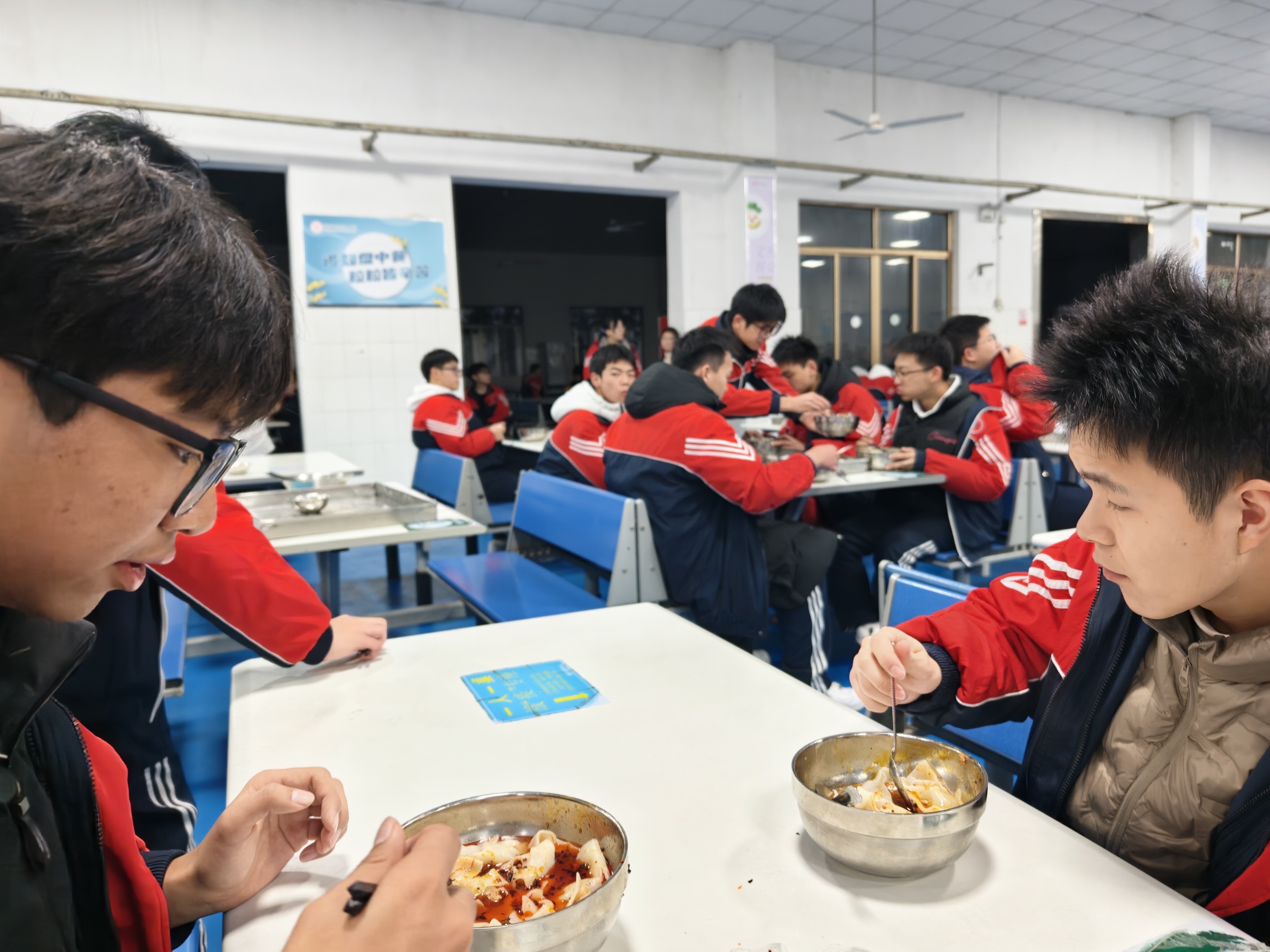 傍晚时分,一盘盘饺子下锅煮沸,食堂内香气四溢。饺子出锅后,学校领导亲手为同学们盛上一碗碗热气腾腾的饺子。接过这份饱含期许的暖心餐食,同学们的脸上洋溢着感动与喜悦,为紧张的高三生活注入了松弛而有力的温暖力量。