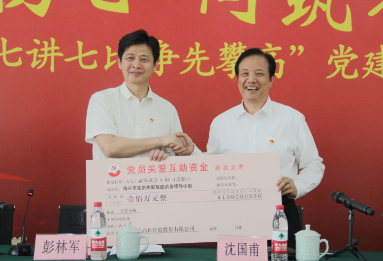 “宏达高科”向海宁党员关爱互助资金领导小组捐资100万元