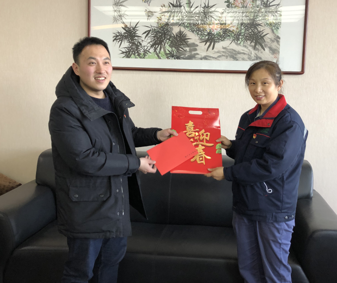 1月29日下午,海宁市联创办副主任沈洵奔到“宏达高科”,慰问海宁市道德模范沈海燕