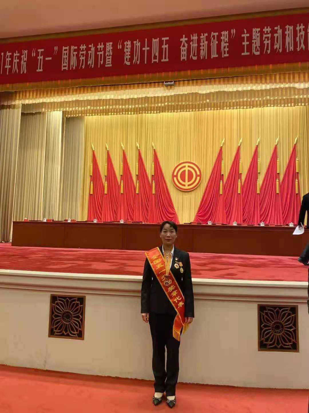 4月27日,庆祝“五一”国际劳动节暨“建功‘十四五’、奋进新征程”主题劳动和技能竞赛动员大会在北京举行,“宏达高科”织造部员工赵巧娟在会上荣获全国五一劳动奖章