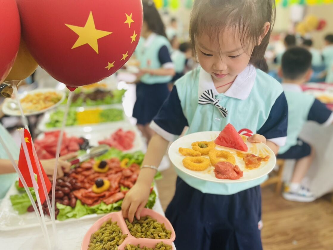 5月31日中午,“宏达幼儿园”开展“童心向党,喜迎‘六一’”红色主题自助餐活动,幼儿们度过了一个愉快而有意义的节日