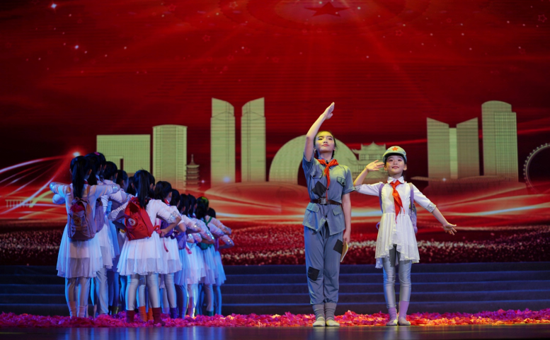 6月4日下午,“南浔学校”小学部节目——《穿越时空的红》,亮相湖州市中小学生庆祝中国共产党成立100周年文艺汇演