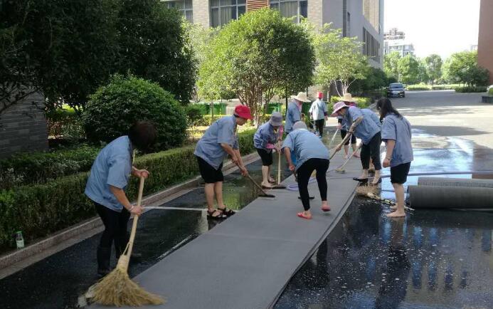 “宏达教育后勤”认真清洗校园地毯,迎接新学期开学
