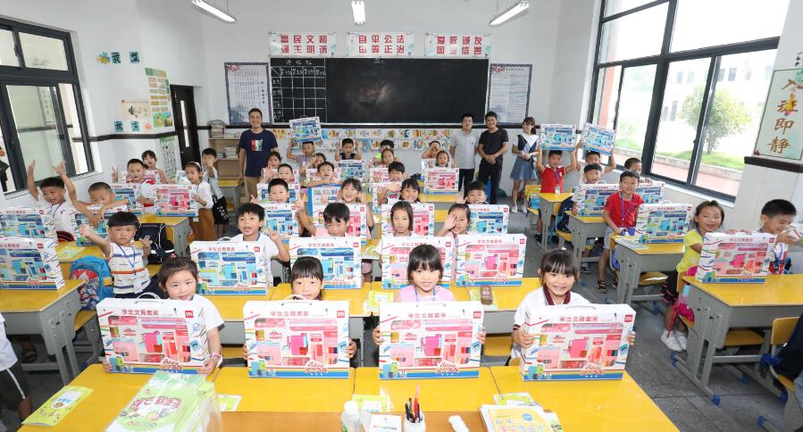 开学初,“宏达小贷”给海宁友谊学校的同学们送去了100份文具大礼包