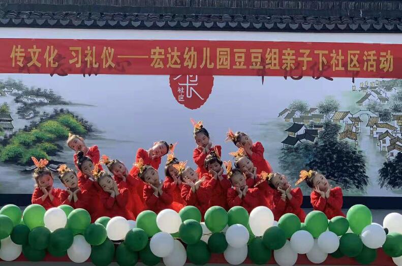 10月27日,“宏达幼儿园”在东长社区举行以“传文化、习礼仪”为主题的亲子下社区活动