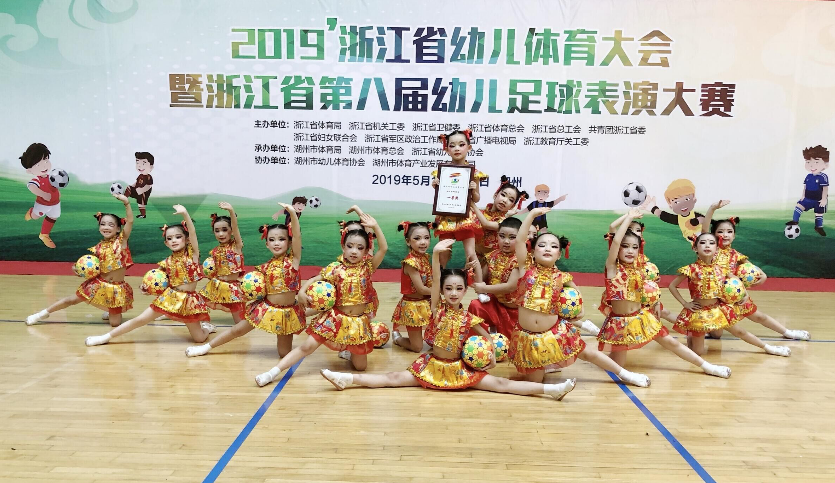 5月10日,“宏达幼儿园”与“宏达(国际)园”两队在浙江省第八届幼儿足球表演大赛中,双双获得足球规定操一等奖、自编操二等奖