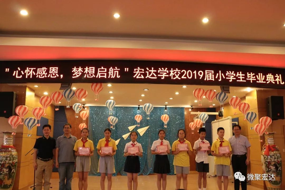 7月7日上午,“宏达学校”举行了以“心怀感恩,梦想启航”为主题的2019届小学生毕业典礼