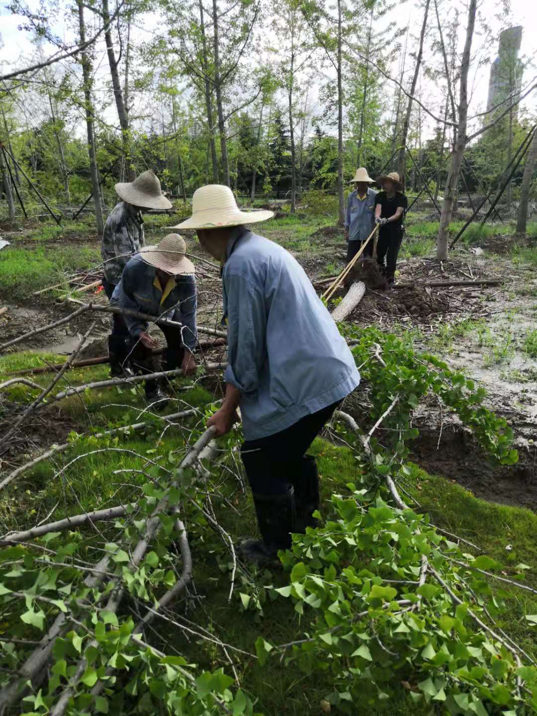 8月11日,台风“利奇马”过后,“教育后勤”员工及时处置被台风刮倒的树木等,迅速恢复校园秩序