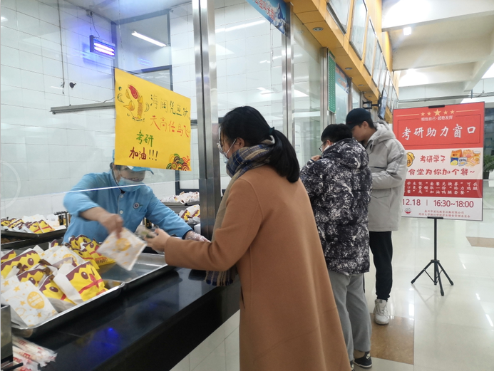 12月18日,“教育后勤”、“学校膳管委”开展“浓情冬日,助力考研”送温暖活动,向“同浙”考研学子免费送出美食套餐,为他们加油打气