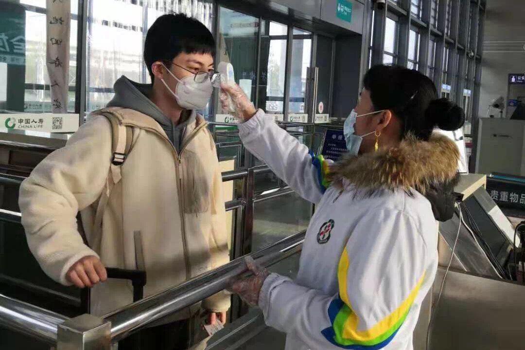 春节以来,宏达控股集团海宁籍党员积极参与属地疫情防控志愿服务活动,目前累计已参与60多次。这是嘉兴市劳动模范、“宏达高科”党员赵巧娟在高铁海宁西站参与旅客测温