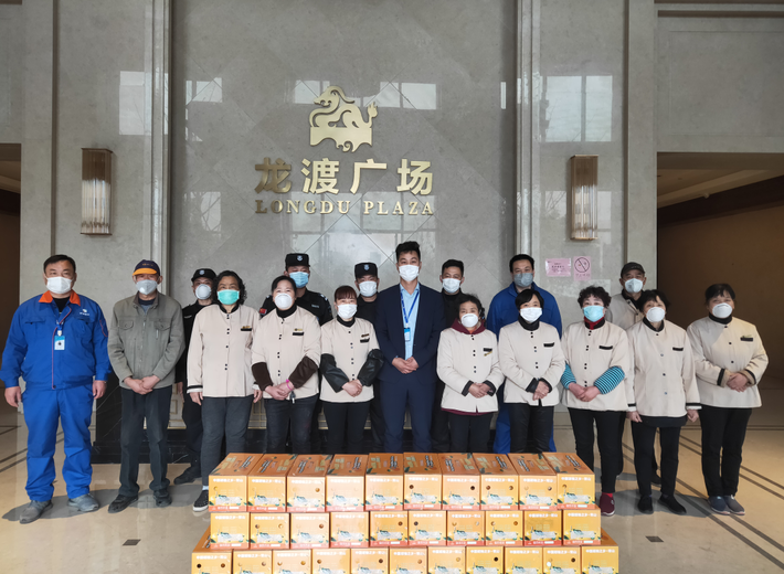 3月16日,“宏达世博置业”向龙渡广场小区的志愿者赠送水果礼盒,以感谢他们为小区的疫情防控工作所作出的贡献