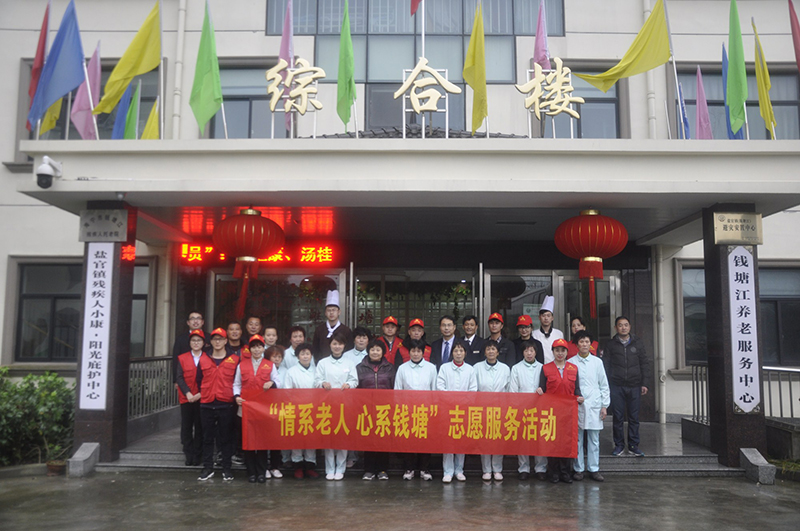 又是一年腊八时。1月5日下午,在党支部书记赵世祥的带领下,钱江君廷酒店志愿者服务队走进钱塘江敬老院,开展“情系老人,心系钱塘”志愿服务活动----为敬老院老人送去温暖的腊八粥。酒店副总经理兼工会主席杨晓嵩、妇委会副主任郎朝霞、团支部书记冯振杰也分别代表酒店工会、妇委会和团支部参加活动。