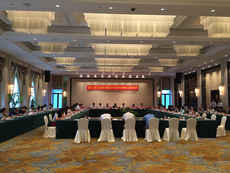 8月7日下午,浙江宏达教育集团2016学年教育工作会议在钱江君廷酒店君朗厅召开,海宁市副市长朱海英、市人大教科文卫工委主任杨文斌、市教育局局长朱建康、集团兼“教育集团”董事长沈国甫、集团总经理沈珺及“教育集团”中层以上领导共65人参加会议。本次会议由“教育集团”党总支书记、副董事长吴育忠主持。