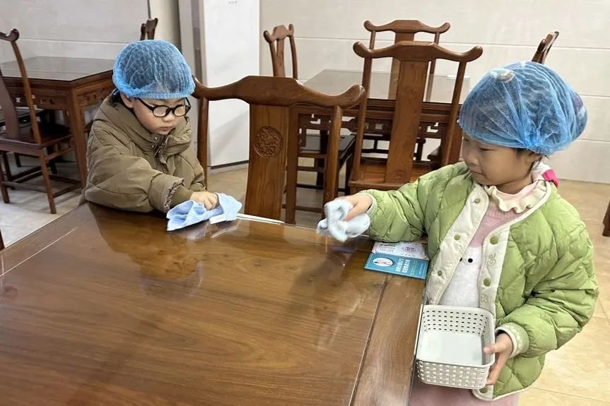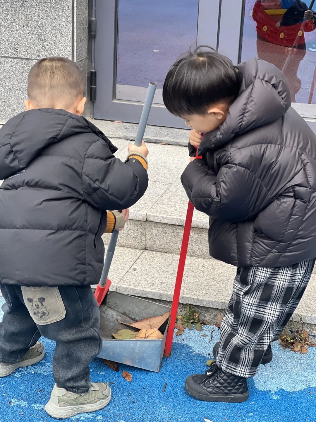 活动中,小托班的小朋友们积极参与劳动,不怕脏、不怕累,在园内擦一擦滑滑梯、扫一扫落叶,帮助大家的同时,也让幼儿园焕然一新。