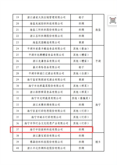 近日,嘉兴市经济和信息化局公布嘉兴市第一批历史经典产业企业名录,海宁中纺面料科技有限公司成功入选。