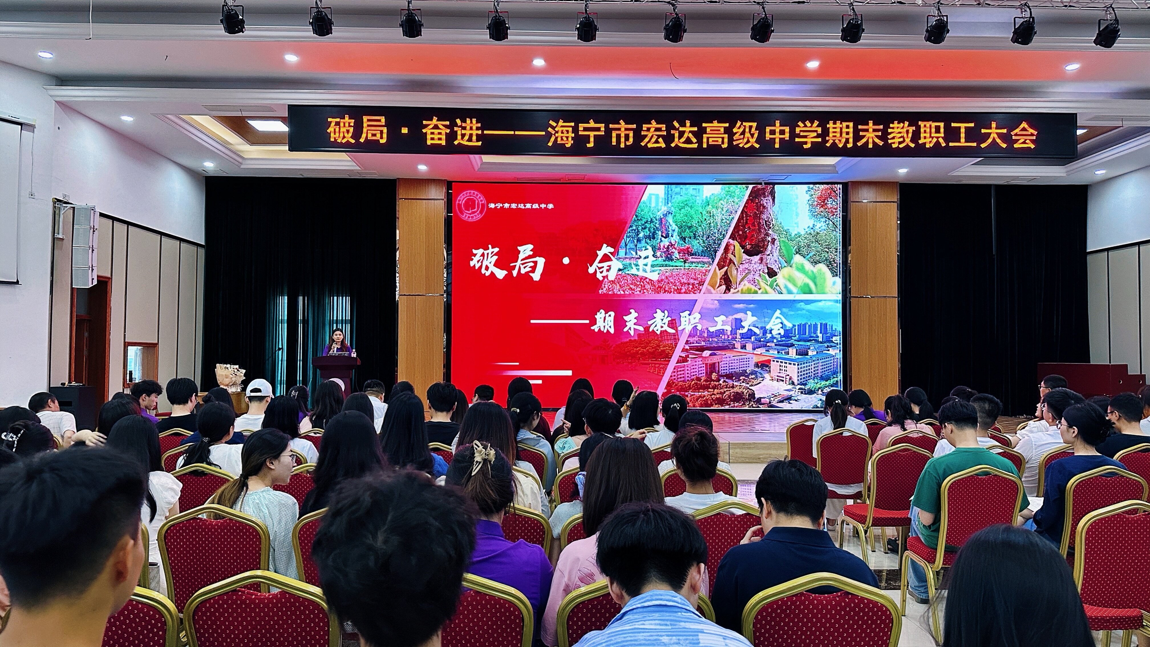 7月9日下午,海宁市宏达高级中学召开以“破局•奋进”为主题的2024学年第二学期末教职工大会,总结过往、谋划未来,110余名教职工齐聚一堂,为新学期蓄力赋能。