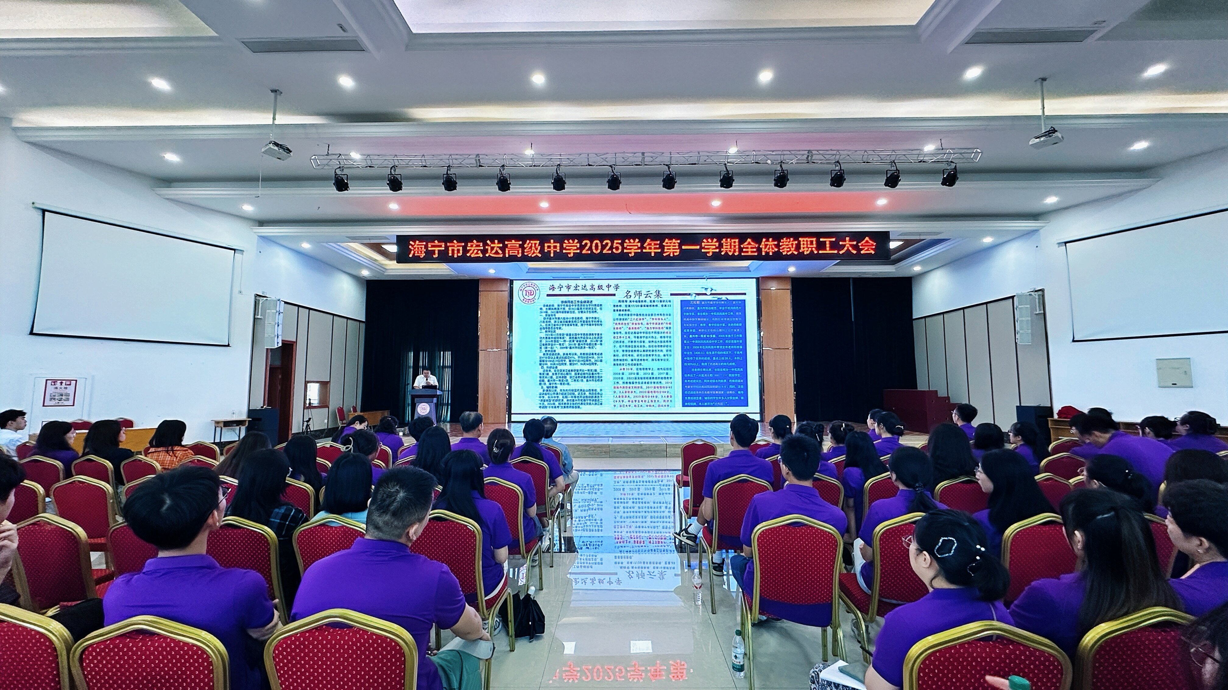 8月27日,海宁市宏达高级中学2025学年第一学期全体教职工大会在行政楼五楼报告厅隆重召开,全面总结上学期各项工作成果,并对新学期各项重点任务作出系统部署,全校130余名教职工参与会议。