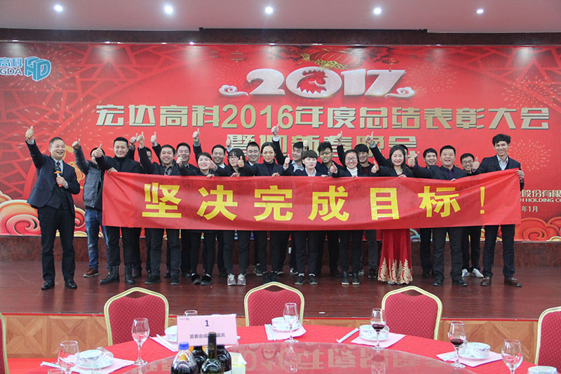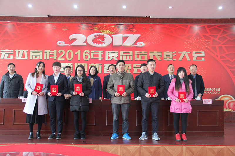 沈国甫董事长在讲话中充分肯定了“宏达高科”2016年度取得的成绩,向各位获奖的优秀员工表示祝贺,预祝大家新春快乐、万事如意!他指出,展望新的一年,国家将千方百计支持发展实体经济,“宏达高科”应当抓住机遇、乘势而上,全体员工应当同心同德、勤劳敬业,超额完成2017年的生产和销售目标,为国家振兴实体经济做出贡献。他鼓励大家在新的一年里要多学习、多钻研、多创新,与公司携手共进,续写“宏达高科”新的篇章!
