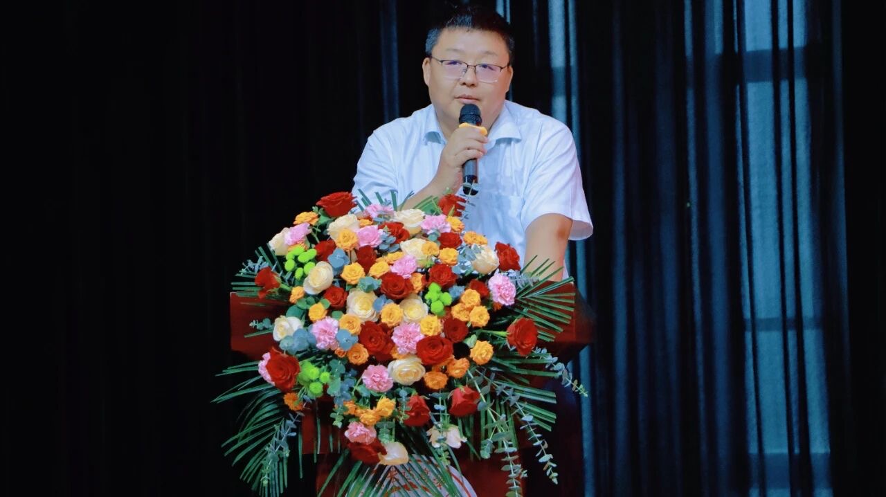 大会在庄严的国歌声中拉开帷幕。会上,“教育集团”党委书记、“宏达高中”校长、“宏达学校”校长马世龙上台致辞,他代表集团董事会和校领导班子向全体教职工致以节日的问候,并对受到表彰的集体与个人表示热烈祝贺,他在致辞中重点回顾了过去一学年学校取得的辉煌成绩,并强调集团正全面推进“小初高一盘棋”贯通培养战略,整合资源、打破学段壁垒,致力于构建一体化育人新格局,为“宏达”教育高质量发展注入新动能。
