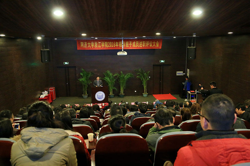 1月19日上午,同济大学浙江学院2016年度学校领导班子成员述职评议会在学校图书馆小报告厅举行,校长陈小龙、常务副校长黄自萍等领导集体“赶考”,在大会上作述职报告,集团董事长兼“同浙”董事长沈国甫携学校董事会成员、全体中层干部及教职工代表听取述职并对述职领导进行民主评议。校党委书记周建新主持述职评议会。