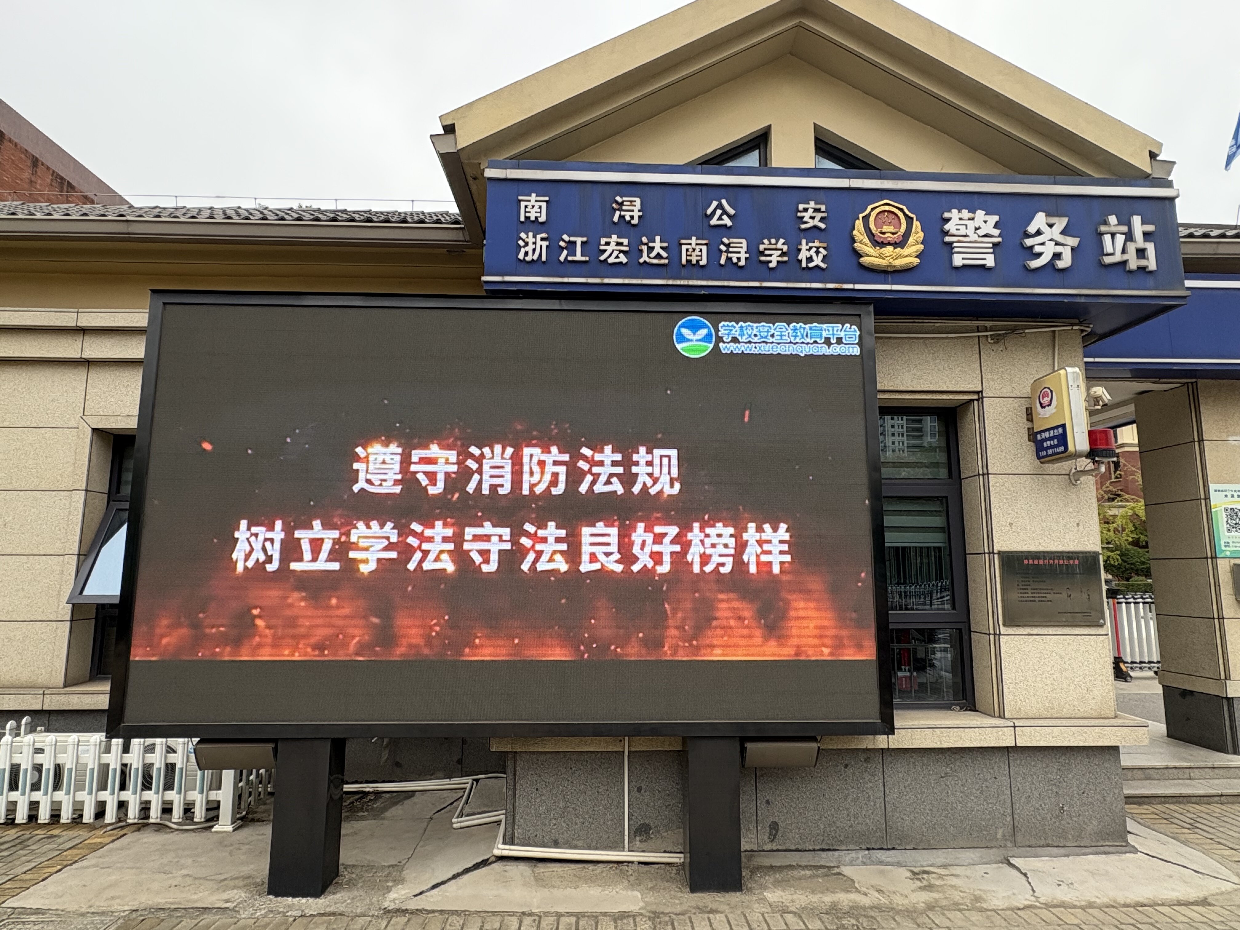 校园内,警务站的电子屏滚动播放“遵守消防法规”主题标语,将消防知识融入校园日常;班级黑板报、宣传栏同步更新消防常识,从“火场逃生要点”到“灭火器分类”,让安全提示随处可见,营造“人人学消防、懂消防、守消防”的良好氛围。