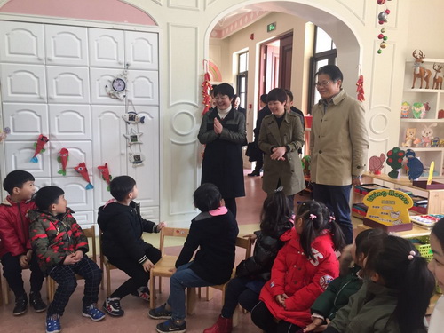 曹市长一行先后参观了“宏达学校”和“宏达国际幼儿园”。在“宏达学校”,曹市长听取了吴育忠校长关于宏达教育集团当前情况的汇报,对“宏达”教育的品牌化战略表示赞赏;在“宏达幼儿园”,曹市长等领导参观了园内的整体环境,还走进教室,弯下腰亲切地和孩子们打招呼,迎来了孩子们热情的问候……