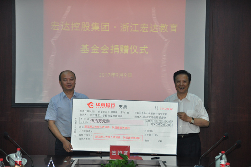 宏达教育基金向“浙理工”捐款50万