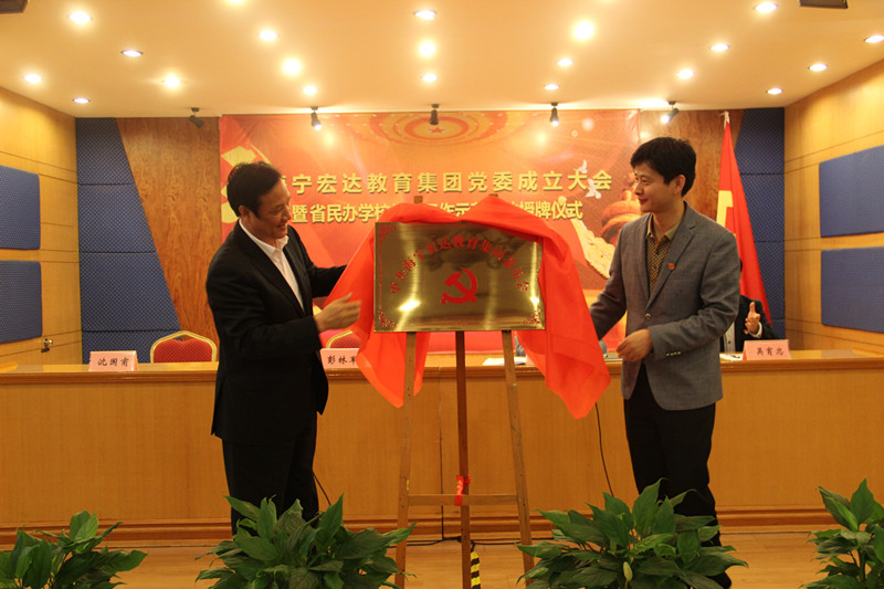 彭林军常委与沈国甫董事长共同为“中共宏达教育集团党委”揭牌