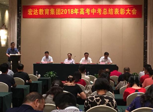 海宁市人大常委会副主任朱祥华,宏达控股集团董事长沈国甫、总经理沈珺出席“宏达教育集团”2018年高考中考总结表彰大会