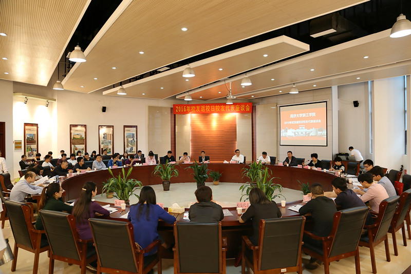 5月7日是同济大学浙江学院的校友返校日。上午,副校长周亚夫,党委副书记、校友会会长林冶等领导与50位校友代表一起,在校行政楼会议室举行了校友代表座谈会。