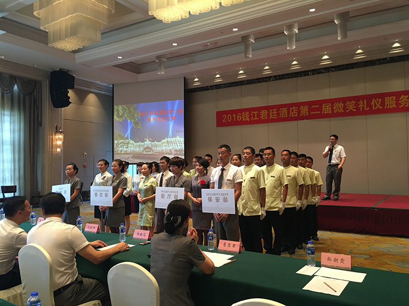 “钱江君廷”通过此次“微笑礼仪服务”比赛,既巩固了酒店各部门的礼仪标准学习成果,也将提升酒店整体礼仪服务水平。