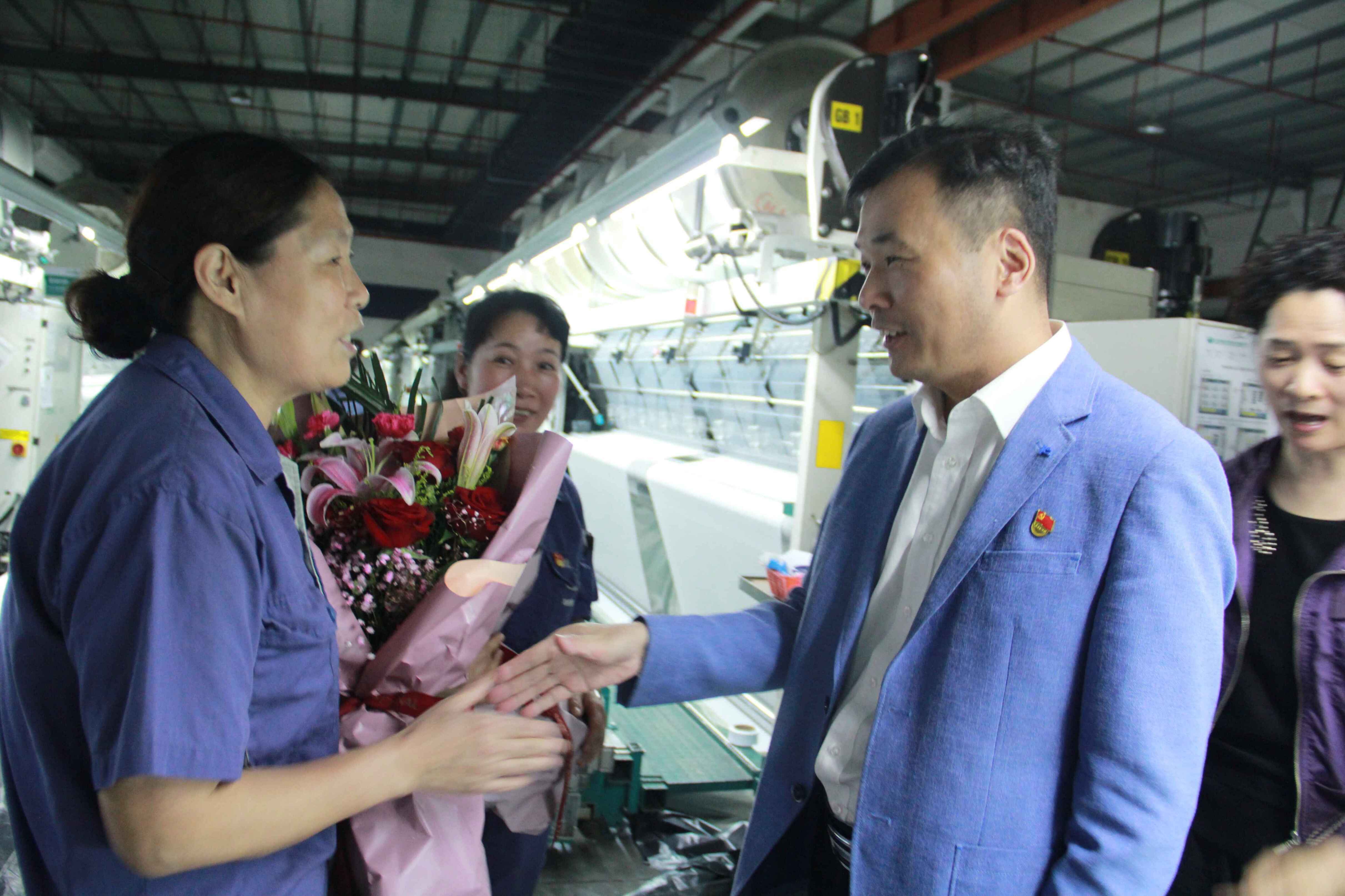 ”五一“前夕,中共许村镇党委副书记朱洪海到”宏达高科“慰问全国劳动模范何娟凤、嘉兴市海宁市两级劳动模范赵巧娟