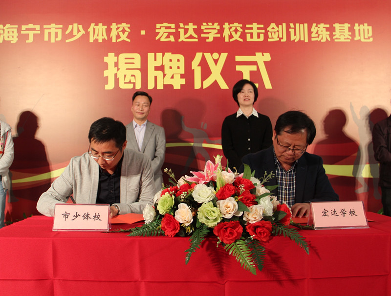 仪式上,市少体校吴冷西校长、“宏达学校”吴育忠校长签署了共建合作协议;何建斌副局长作了讲话。他表示,“宏达学校”引入击剑项目,不仅有利于推动学校特色体育教学的开展,对提升全市体育运动竞技水平也有很大的促进作用,并对开展好此项运动提出了具体要求。