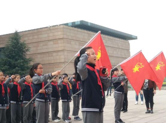 在宣誓墙前进行中国少年先锋队入队宣誓