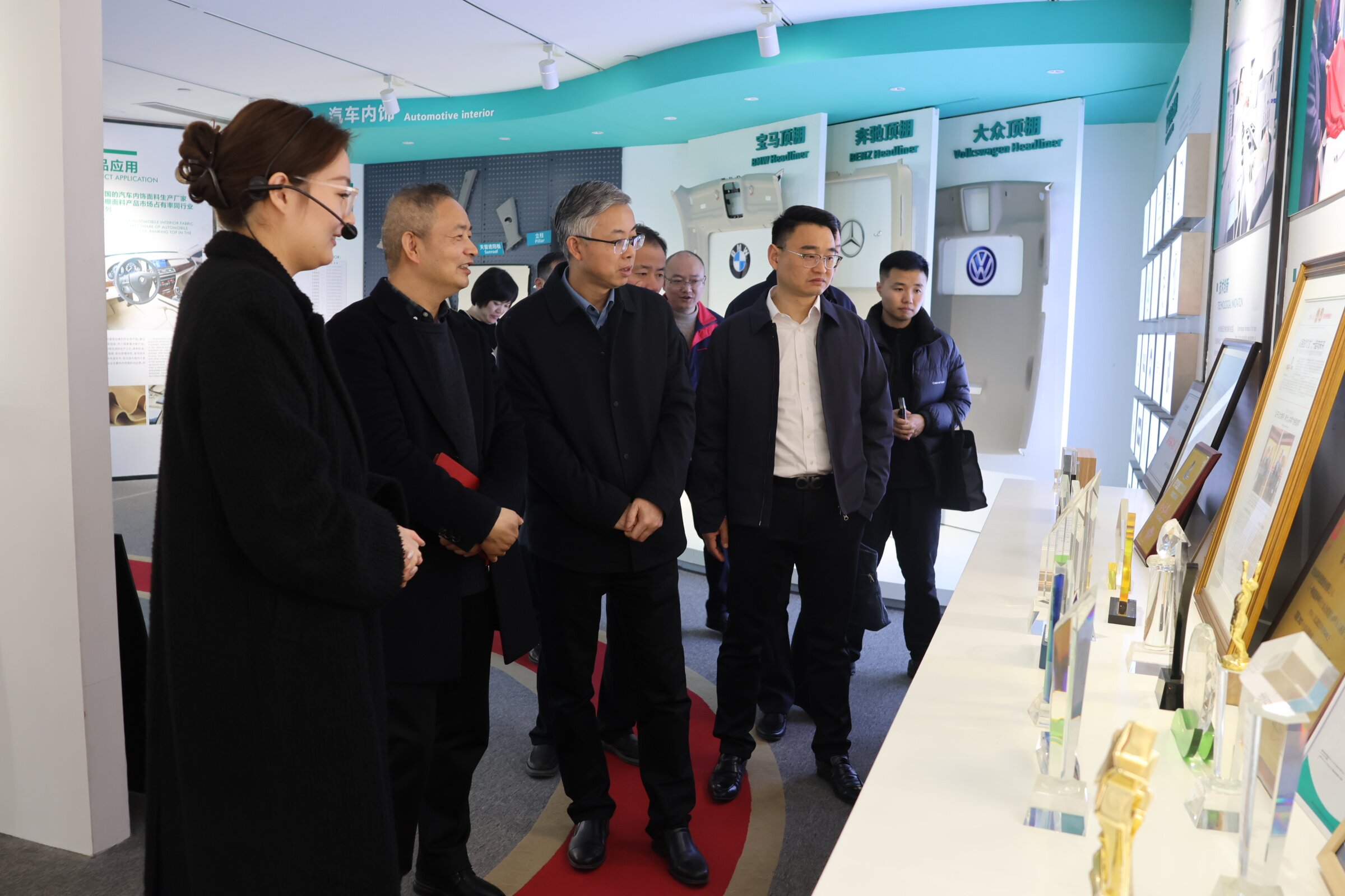 在“宏达高科”,徐勇副主席一行参观了经编车间及公司展厅,对公司的产品、发展历程、产业布局有了深入的了解。