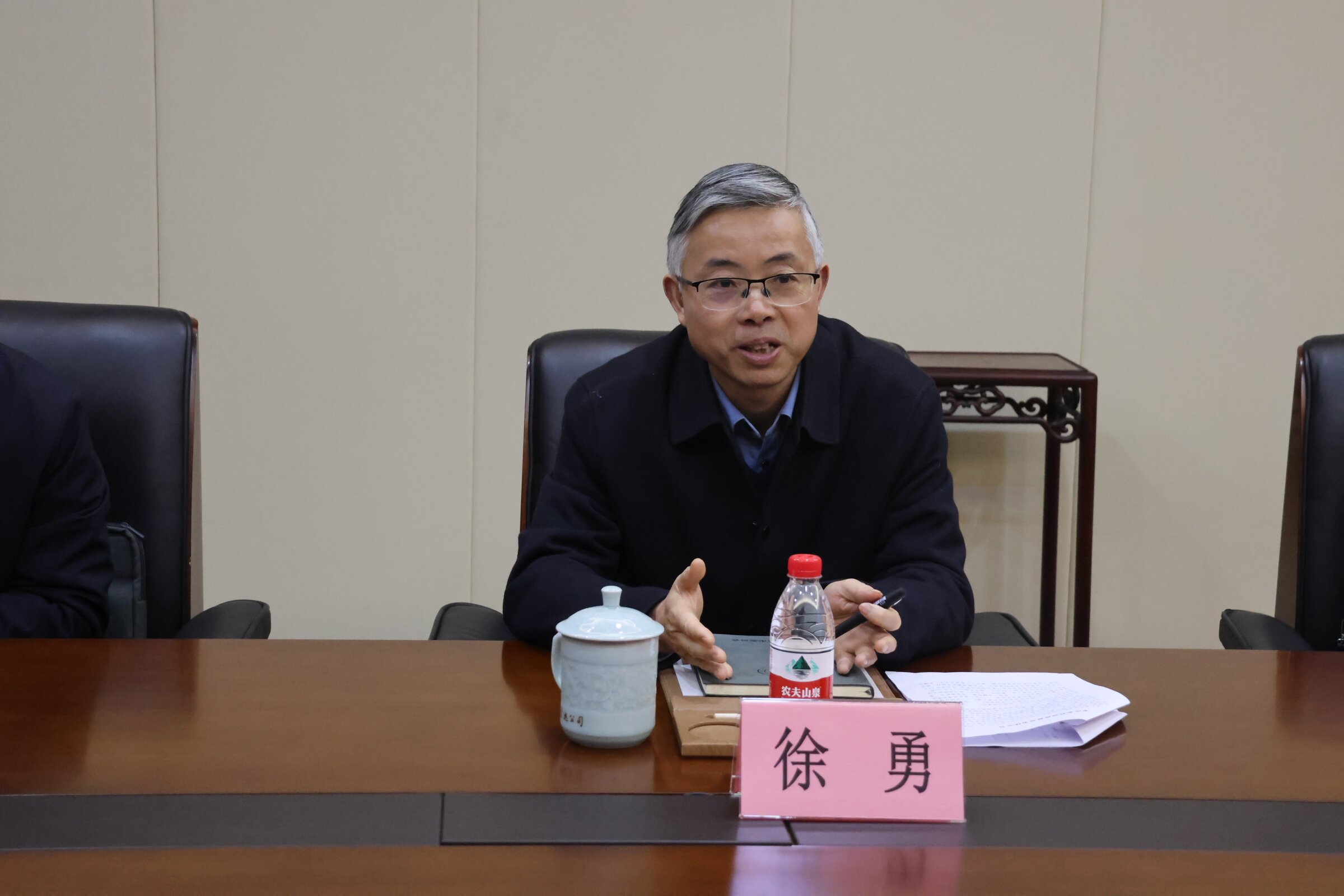 在公司会议室,徐勇副主席一行听取了许建舟总经理关于公司生产经营情况的汇报及产业升级项目情况。