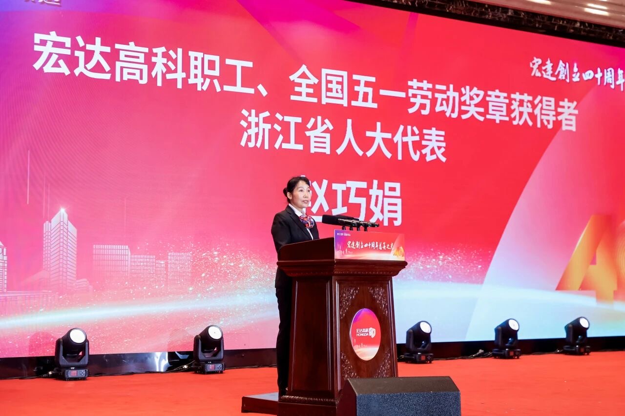 活动现场,全国五一劳动奖章获得者、浙江省人大代表、“宏达高科”职工赵巧娟,以自身与企业共同成长的经历,展现了“宏达”员工“精益求精”的匠心,也印证了企业基业由无数平凡身影用汗水筑牢的事实。
