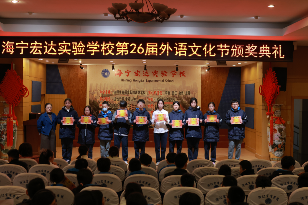 近日,海宁宏达实验学校初中部以“Bring English to life”为主题的外语文化节颁奖晚会圆满落幕,本次外语文化节通过一系列丰富多彩的活动,让同学们告别课本的枯燥,在沉浸式体验中玩转英语,真正让这门语言“活”了起来,全校初中部450余人积极参与。