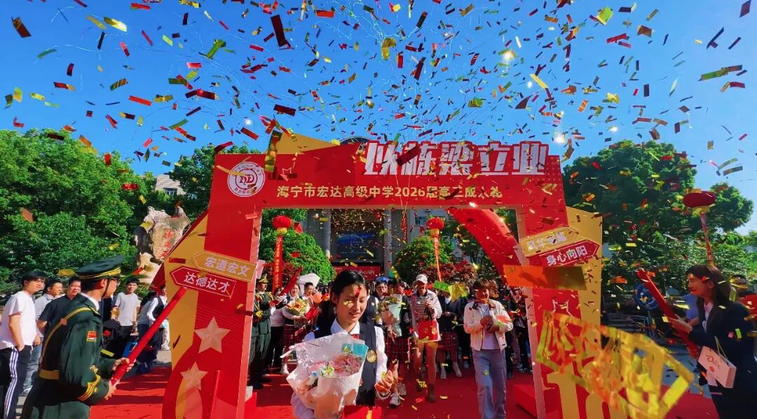 4月19日下午,海宁市宏达高级中学2026届高三成人礼隆重举行,全体高三学子在家长、校领导及高三教师的共同见证下,以“五崛华章”为序,完成了一场庄严而又温情的成人仪式。