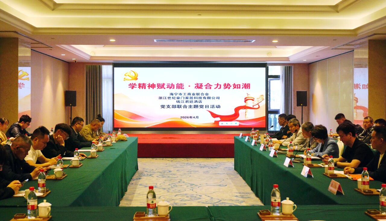 4月19日上午,海宁市工商业联合会党支部、海宁钱江君廷酒店党支部、浙江世纪豪门家居科技有限公司党支部,在钱江君廷酒店联合开展“学精神赋动能、凝合力势如潮”主题党日活动,各支部党员、预备党员、入党积极分子及市派党建指导员参加活动。