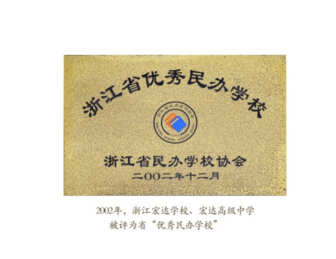 2002年,浙江宏达学校、宏达高级中学被评为省“优秀民办学校”