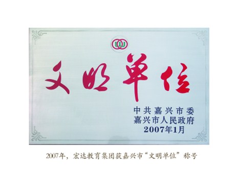 2007年,宏达教育集团获嘉兴市“文明单位”称号